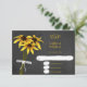 Diese Wildblume Chalkboard Stil Hochzeit RSVP verfügt über einen Band gebunden Bündel von 3 kreidegezeichnet Black Mit Augen Susan Blume mit bicfarbenem Gold und Mahagoni Blätter aufgestellt auf der Vorderseite der Karte links - die Rückseite der Karte ist eine anpassbare solide Farbe, derzeit mahogany - von katz_d_zynes