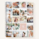 Passen Sie dieses Wendelheft mit 19 quadratischen Fotos an, die in einem Rasterkollage-Layout angeordnet sind, wobei Ihr Single ein Monogramm auf einem rot rosa Quadrat unten rechts hat. Die Rückseite hat Ton auf den Ton Streifen in Jahrtausend rosa.