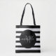 Black Monogram Script Calligraphy Modern Strip Tote Bag