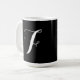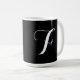 Diese lustige und extravagante Tasse ist mit einem eleganten Monogramm auf schwarzem Hintergrund dekoriert, was es zu einer eleganten Wahl macht. Karo aus der koordinierenden Espresso-Tasse.