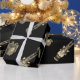 Weihnachts-Wrapping Paper in Classic Nutcracker Soldat gepaart mit Geschenkboxen mit Bögen, Sepia und Black