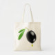 Schwarze Oliven mit Öltropfen Tragetasche