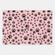 Schwarze Paw Prints auf Lemonade Pink Geschenkpapier Set