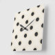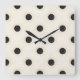 Schwarze Polka Punkte auf antiken Weiß erschüttert Quadratische Wanduhr