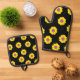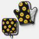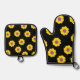 Schwarze Potholer und Ofen-Mitte mit gelben Blumen Ofenhandschuh & Topflappen-Set