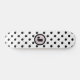 Dieses lustige Skateboard zeichnet sich durch ein Schwarz-Punkte-Muster auf weißem Hintergrund aus, mit einem gerahmten, benutzerdefinierten Monogramm auf blassrosa Hintergrund. Klicken Sie auf Vorlage personalisieren, um das Monogramm einfach zu personalisieren und den Schriftart und die Farben weiter anzupassen.