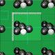 Auf Grün sind schwarze Rasenschüsseln und Jack in einem Muster abgebildet.