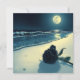 Schwarze Rose am Strand mit Vollmond Karte