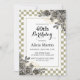 Schwarze Rose Flora Sage & White Checkered Geburts Einladung