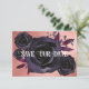 Dunkelschöne lila, schwarze Aquarellfarben-Rose mit lila Blattwerk verzieren diese elegante moderne Gotik Rettete unsere Date Card. Die Rückseite ist ein Steingrau mit weißem, traditionellem Text, der als Rahmen für Ihr Foto mit einer schwarzen Rose in der Mitte verziert ist. Treten Sie ein in ein Reich, in dem gotische Elemente mit moderner Ästhetik in unserer Schwarz-Gotischen Hochzeit Gerettet werden. Liebe und Dunkelheit werden gefeiert, wo Geister unter Mondlicht tanzen und der Zauber der Liebe keine Grenzen kennt.