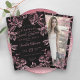 Elegante 16 . Geburtstag Birthday Party Einladung mit Black Rose Gold Floral Motiv, individuelles Foto & moderne Typografie Skript.