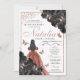 Elegante Schwarz und Rose Gold Floral Quinceanera Birthday Einladung