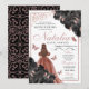 Elegante Schwarz und Rose Gold Floral Quinceanera Birthday Einladung