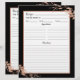 Hier ist die perfekte doppelseitige Rezeptseite, die für die Koordination mit dem passenden Bindemittel entworfen wurde. Das Design, sowohl vorne als auch hinten, ist mit einem hübschen Imitat-Rose goldgeflochtenen Blattgold oben rechts und unten links auf einem schwarzen Hintergrund, mit Platz für alle Informationen, die Sie für Ihre Rezepte benötigen. Wenn Sie eine Designfrage haben oder dieses Design auf einem anderen Produkt sehen möchten, kontaktieren Sie mich bitte unter jschmidtdesignworks@gmail.com. Design © Judith Schmidt.