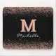 Schwarze Rose Gold Glitzer Monogram Mousepad