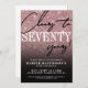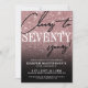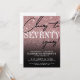 Feiern Sie stilvoll mit dieser modernen, eleganten Einladung zur Siebzigsten Geburtstagsfeier, perfekt, um einen Meilenstein auf zeitlose, chic Weise zu markieren. Das Design zeigt einen luxuriösen Rosen-Gold-Glitter-Hintergrund, der nach unten in einen schwarzen Farbverlauf übergeht und einen glamourösen, anspruchsvollen Look schafft. Ein großes „SIEBZIG“ erscheint oben in einer schlanken Serifenschrift, mit schwarzen und weißen Script-Schriften darüber und darunter, die „Auf siebzig Jahre!“ lesen, für ein stilvolles, festliches Gefühl.
