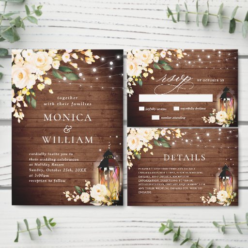 Wood, Blush Roses, Lantern and LightsDesignt von Ellen L