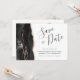 Diese elegante, moderne Save the Date-Karte verfügt über einen schwarzen Aquarellstreifen in Aquarellfarbe getrimmt mit Imitaten Rose Gold Glitzer. Der anpassbare Text kombiniert handgeschriebene Skripte, Copperplate und kursiv Schriftart in Holzkohlegrau auf weißem Hintergrund. Auf der Rückseite finden Sie Leerzeichen für 5 Fotos (2 quadratisch, 2 horizontal, 1 vertikal) und eine Zeile für Ihre Website-URL oder andere Informationen. Ersetzen Sie die Beispielbilder einfach mit Ihren eigenen Fotos der zukünftigen Braut und des Bräutigams.