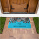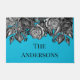 Diese cool aussehende Begrüßungsmatte ist bereit, mit dem Namen Ihrer Familie oder jedem gewollt Text personalisiert zu sein. Diese Türmatte zeigt die Abbildungen von Schwarz-Weiß-Rosen in einem antiken Gravierstil-Set vor einem hellblau-leuchtenden Hintergrund.