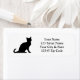 Schwarze Rücksendeadressen-Aufkleber. Niedliche Aufkleber für Katzenliebhaber. Einfaches Design mit Silhouette eines Kätzchens. Anpassbarer Text und farbige Hintergrundfarbe.