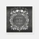 Diese schwarz-weiße gotische Blütenkugel Hochzeitsserviette kann mit Ihren Informationen in der modernen Typografie auf einem schwarzen rustikalen Holzboden personalisiert werden. Entwickelt von Thisisnotme©