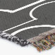 Diese Decke hat eine Art Deko-Design von weißen Halbkreise mit Linien auf einem Feld von schwarz verbinden.