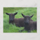 Paar von zwei kleinen schwarzen Lämmern in üppig grünem Gras.