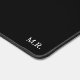 Black Desk Mat mit kundenspezifischen Monogramm-Initialen - minimale individuelle Schreibtischmatte, minimalistische persönliche Großschreibmatte, minimalistische Büroschreibmatte, personalisierte schwarze Schreibtischmatte, Tischmatte aus Kunststoff, individuell initialisierte Monogramm-Initialen, eigene Briefe hinzufügen, personalisierter mit Monogramm Text, einfaches, klassisches Design, cooles schlichtes dunkles Schreiben ästhetisch