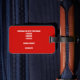 Dieses Volleyballteam farbt Gepäcksack-Anhänger ist einfach mit drei zufällig angeordneten Volleybällen mit roten, schwarz und weiß Paneelen entworfen - personalisieren Sie den Spielernamen und das Monogramm auf der Vorderseite, Adressdaten auf der Rückseite - von katz_d_zynes