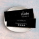 Solid schwarzer Ohrring-Display mit zwei bedruckten Loch "Markern". Script Schriftart in Weiß.