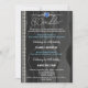 Dies ist eine Einladung an zwei Leute, die gemeinsam ihren Geburtstag feiern. Das Design hat ein elegantes schwarzes Seidenmuster mit zwei Strähnen aus weißen Perlen und einem blauen goldenen Herzmuschel auf einer weißen Trennlinie. Der Text ist in weißen und hellblauen Farben geschrieben, um dem blauen metallischen Hintergrund hinter der Karte zu entsprechen.