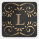 Schwarze Seidengoldfolie geblüht Monogramm Quadratischer Aufkleber