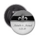 Dieses knöpfen Runde, Öffner der magnetischen Flasche kennzeichnen das Bild einer Silbermetallart Lilie in einem schwarzen und grauen Farbentwurf. Die perfekte Bevorzugung für Ihr New- Orleanshochzeitsereignis oder Karneval-Party!