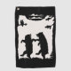 Dieses Golfhandtuch ist eine schwarz-weiße Silhouette von zwei schwarzen Bären, die unter Bäumen im Gras tanzen und von einer Eule beobachtet werden.