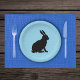 Diese Papiertafel ist hellblau mit einem Hasen aus schwarzer Silhouette in einer Sitzposition. Minimalistischer Stil ideal für Ostern- oder Frühjahrsfeiern.