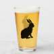 Dieser Glaswäscher für Getränke hat eine schwarze Silhouette eines sitzenden Hasen aus einem Seitenprofil vorne und hinten.