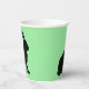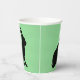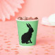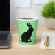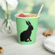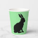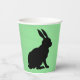 Diese Papiertassen haben das Seitenprofil einer schwarzen Silhouette, die auf einem Hasen mit hohen Ohren auf grünem Hintergrund sitzt.