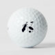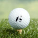 Schwarze Silhouetten von Golfartikeln auf weißen Golfbällen.