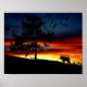 Schwarze Silhouette von Wolf, Vögeln und Baum im S Poster