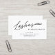 Ein unbedeutendes man versah Visitenkarte für einen Peitschenkünstler oder einen Peitschentechniker mit den Peitschen mit Seiten, die in ein einfaches dünnes Bürstenskript mit den Peitschen geschrieben wurden, die heraus vom letzten Buchstaben auflockern. Addieren Sie Ihren Namen und treten Sie mit Info in den schlichten modernen Buchstaben in Verbindung.