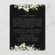 Eine schwarze, flache Hochzeitszimmerkarte für Informationen zu Hochzeitsreisen oder für den Weg, wenn Ihr Empfang sich an einem anderen Ort befindet. Mit einem Rand aus handgemalten Snowberries und Eukalyptus vorne und einem Kranz auf der Rückseite der Karte. Alle Texte sind vollständig editierbar und die verstreuten Punkte auf der Vorder- und Rückseite können vor der Bestellung gelöscht werden, wenn Sie es vorziehen. Diese Karte ist mit alternativen botanischen Designs, in einem Landschaftsformat und in verschiedenen Farben erhältlich. Bitte schauen Sie sich die Sammlung in meinem Geschäft an, um alle Optionen und Koordinationsgegenstände zu sehen.