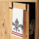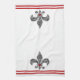 16" x 24" Küchentuch mit einem Bild, an beiden Enden, einer Schwarzspitze-Lilie mit einem karminroten Herzakzent. Rote Streifengrenzen. See zusammenpassende Stoffserviette, Papiercocktailserviette, Stoff-Tischset, PapierTischset und Untersetzer. Sehen Sie die gesamte Cancan-Geschirrtuchsammlung im FOOD/BEV | Leinenabschnitt.