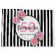 Klassische schwarz-weiße Streifen als Hintergrund. Mit mädchenhaften, femininen und romantischen rosa Rosen als Dekoration. Ideal für eine elegante 50. Geburtstagsfeier für sie. Ein Schwarzweißrahmen mit Vorlagen für Name, Alter und Datum. Alter Nummer 50 in Rosa, Name und Datum in schwarz. Der Name wird mit einem handgeschriebenen Stilskript geschrieben.