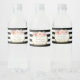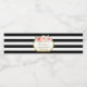 Maßgeschneidertes Flaschenetikett in Schwarz-Weiß Streifen mit Vintagem, hellrot-rosa Aquarell-Blume und Goldrahmen. Kann für jeden Anlass angepasst werden, ideal für Brautpartys, Hochzeiten, Babyduschen und Geburtstagsfeiern.