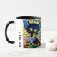 Dieses ist eine ChihuahuaKaffeetasse mit meiner Hundehaustier-Cartoonkunst, die in einer Art des befleckten Glases übertragen wurde. Sie können dieses besonders anfertigen, indem Sie den Namen zum Namen Ihr Hundes, zu Ihrem Namen ändern, oder zum Namen der Person geben Sie diese Tasse zu.