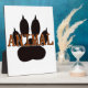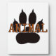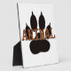 Eine schwarze Pfote und eine Klaue drucken mit braunem Text. Originelles Design.