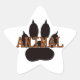 Eine schwarze Pfote und eine Klaue drucken mit braunem Text. Originelles Design.