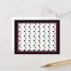 Ein klassisches Design mit schwarzen Musiknoten auf weißem Hintergrund. Akzentriert durch eine Grenze von bordeauxrot und schwarz.