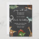 Schwarze und farbenfrohe Printable Dinosaurier zum Einladung