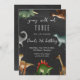 Schwarze und farbenfrohe Printable Dinosaurier zum Geburtstag Einladung